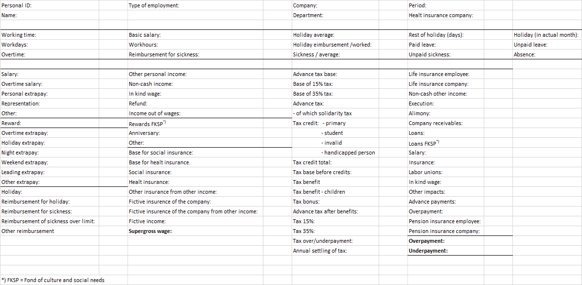 Electronic payslips are permitted with employee consent. All salary payments and tax filings must be in CZK. Employers must archive payroll and pension records for 45 years.
