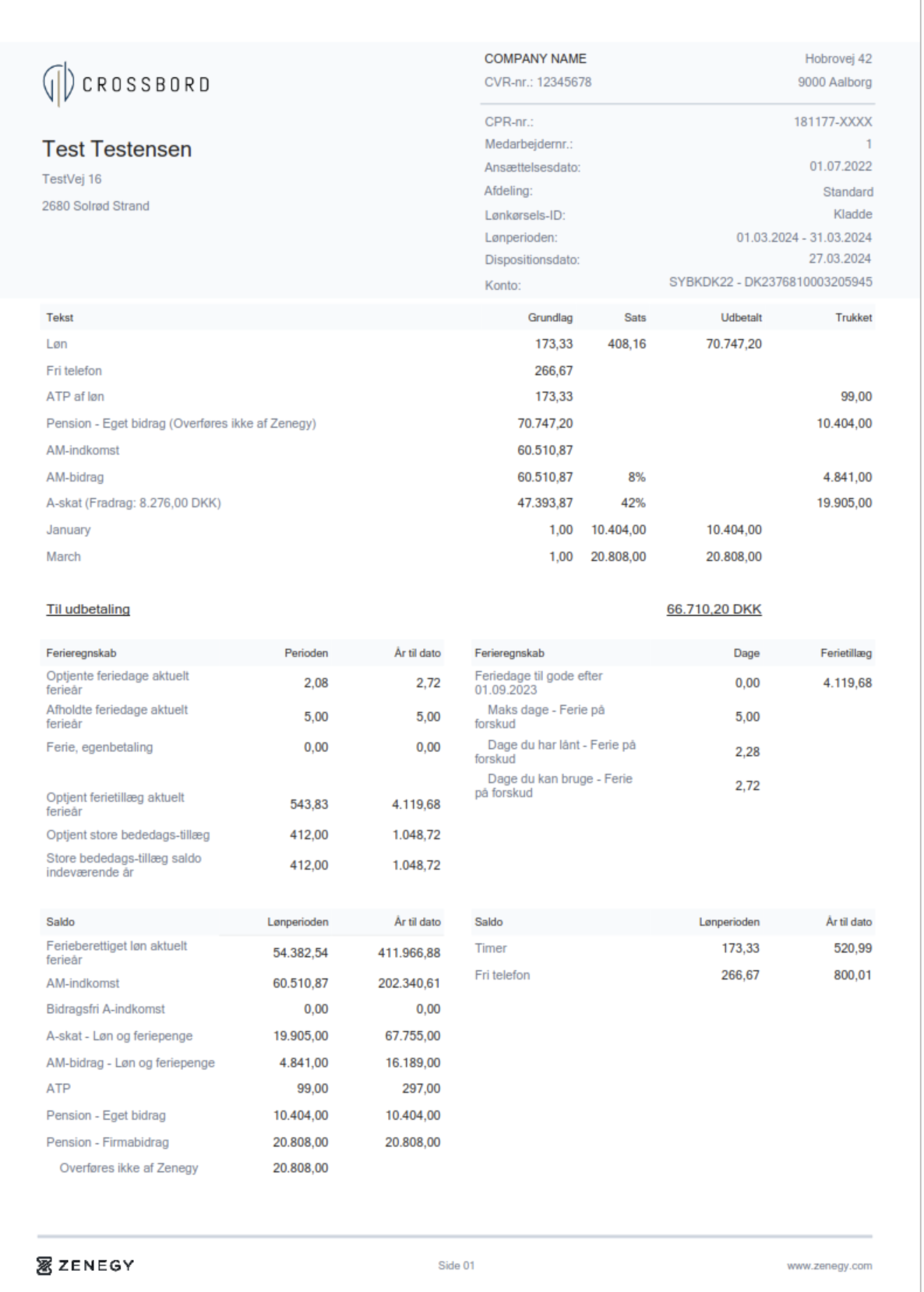Monthly reports are filed through the “E-indkomst” system, which consolidates tax, work time, and social data. There is no annual summary; monthly filings contain all year-end details.