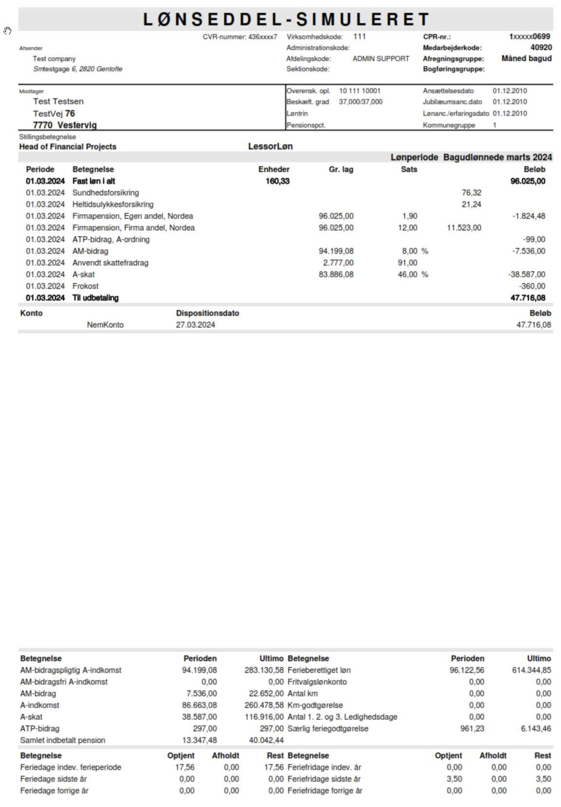 New hires must be registered digitally. If the employee is not already known to the Danish tax system, an onboarding form must be submitted. Expatriates must provide passport, visa, marriage certificates, and account details.