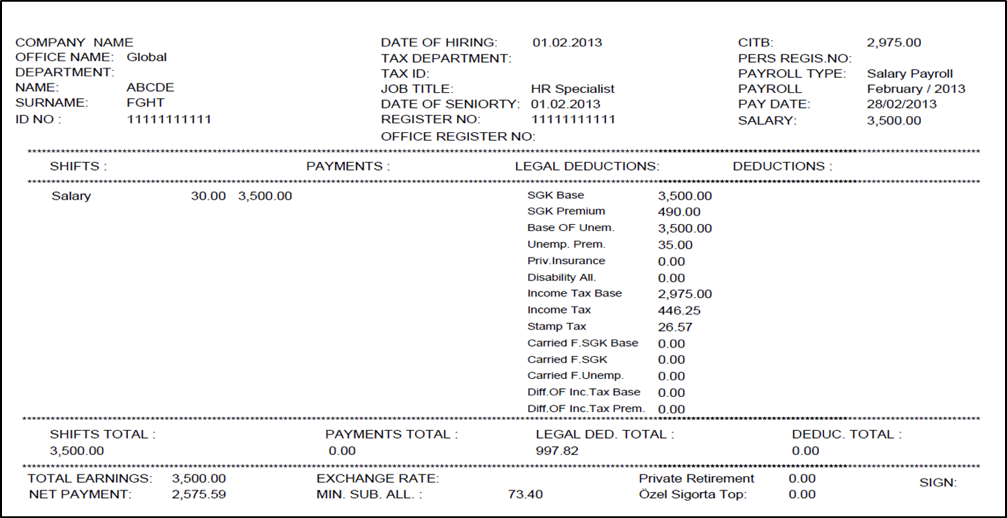 - Payroll software must be integrated with E-bildirge (SGK’s online portal)