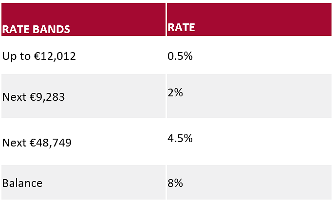 From 1st January 2022, USC will apply at the following rates (for employees earning in excess of €13,000):