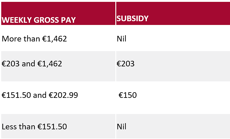 For the months of March and April 2022, a flat rate subsidy of €100 will replace €203 and €150. The rebate of Employers’ PRSI will no longer apply for these two months.