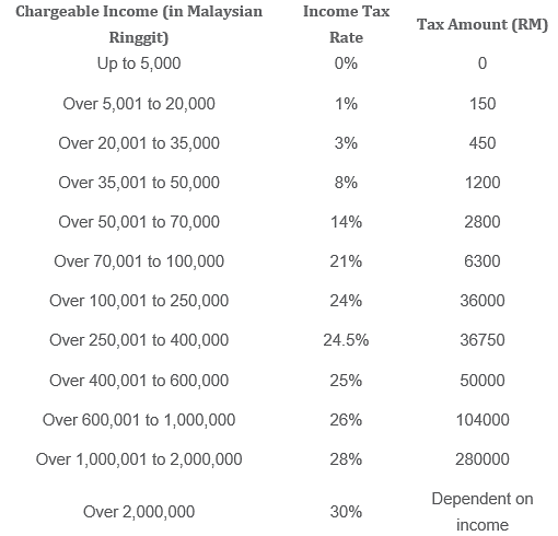 Expat employees classified as residents must pay tax according to Malaysia's progressive system. There are numerous tools and resources available to help calculate tax liability. In more detail, however, Malaysia income tax rates fall into the following bands: